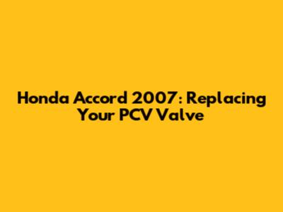 Honda Accord 2007: Replacing Your PCV Valve