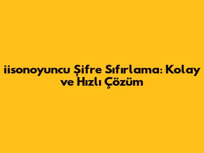Iisonoyuncu Şifre Sıfırlama: Kolay Ve Hızlı Çözüm