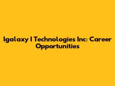 Igalaxy I Technologies Inc: Career Opportunities