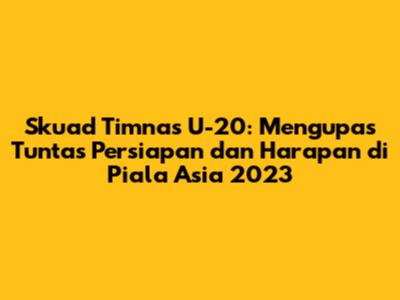 Skuad Timnas U-20: Persiapan Dan Harapan Di Piala Asia 2023