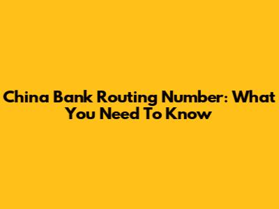 China Bank Routing Number: What You Need To Know