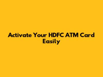 Activate Your HDFC ATM Card Easily