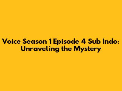 Hey guys! Are you ready to dive deep into the thrilling world of "Voice" Season 1, Episode 4 with Indonesian subtitles? If you're a fan of suspenseful crime dramas, then you're definitely in the right place. In this episode, the plot thickens as our protagonists continue their relentless pursuit of justice, navigating through a labyrinth of clues and dangerous encounters. The availability of Indonesian subtitles (sub Indo) is a game-changer for those of us who love to immerse ourselves fully in the narrative without missing a single nuance. So, grab your snacks, get comfortable, and let’s explore what makes this episode so captivating.